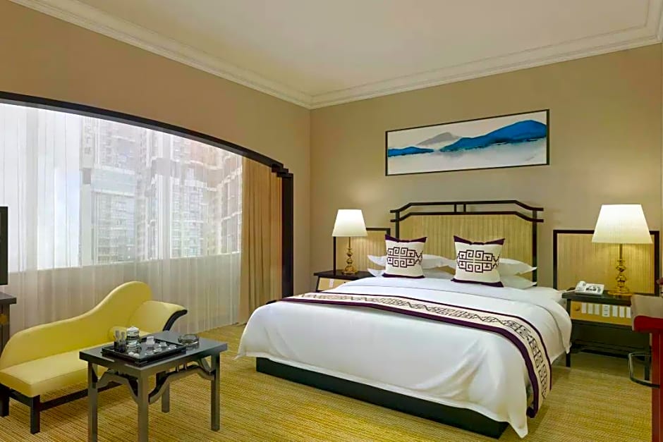Between sightseeing, a seasonal outdoor pool provides a refreshing break, and on-site 茶皇殿 serves Cantonese and Chinese cuisines for convenient dining.